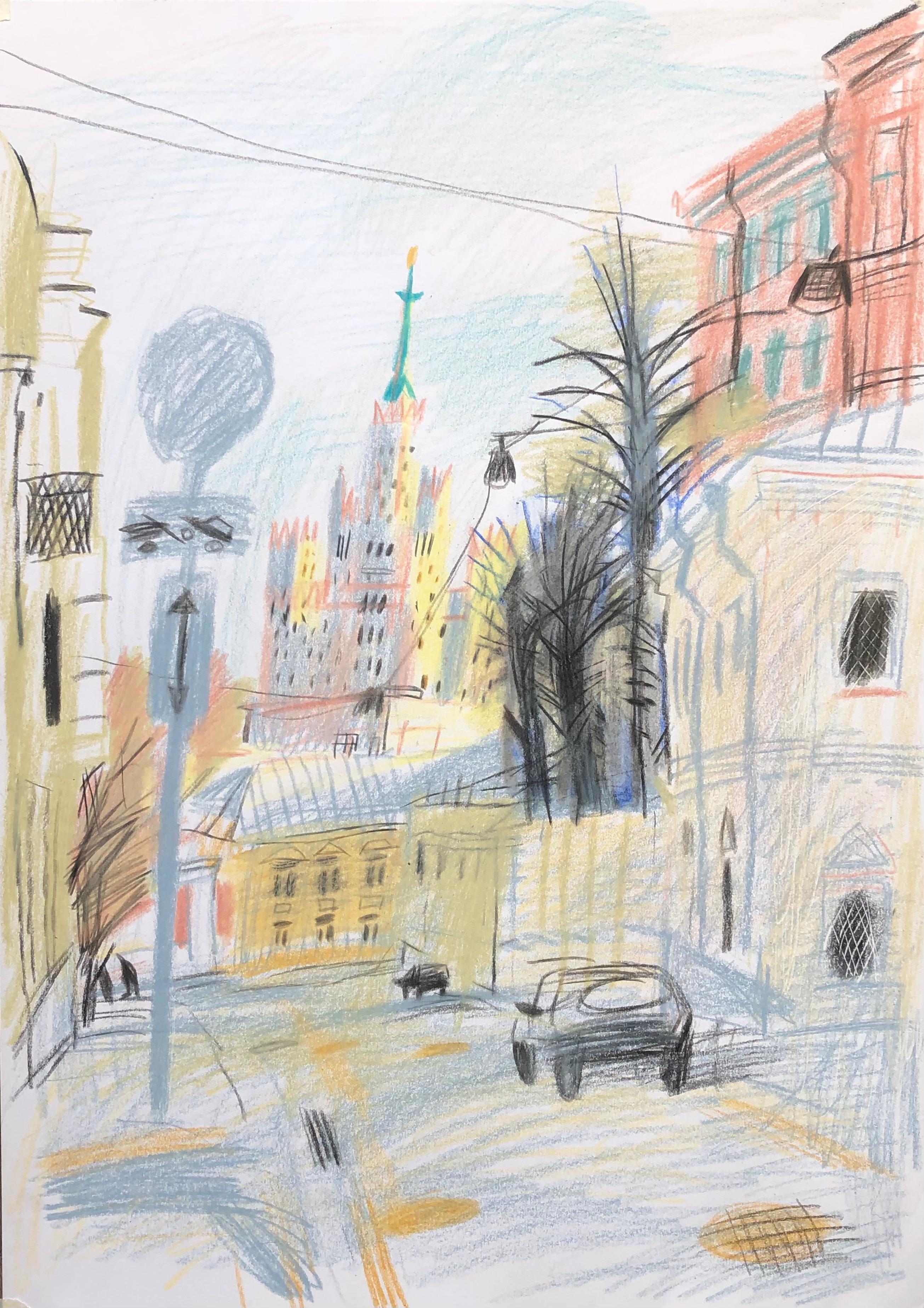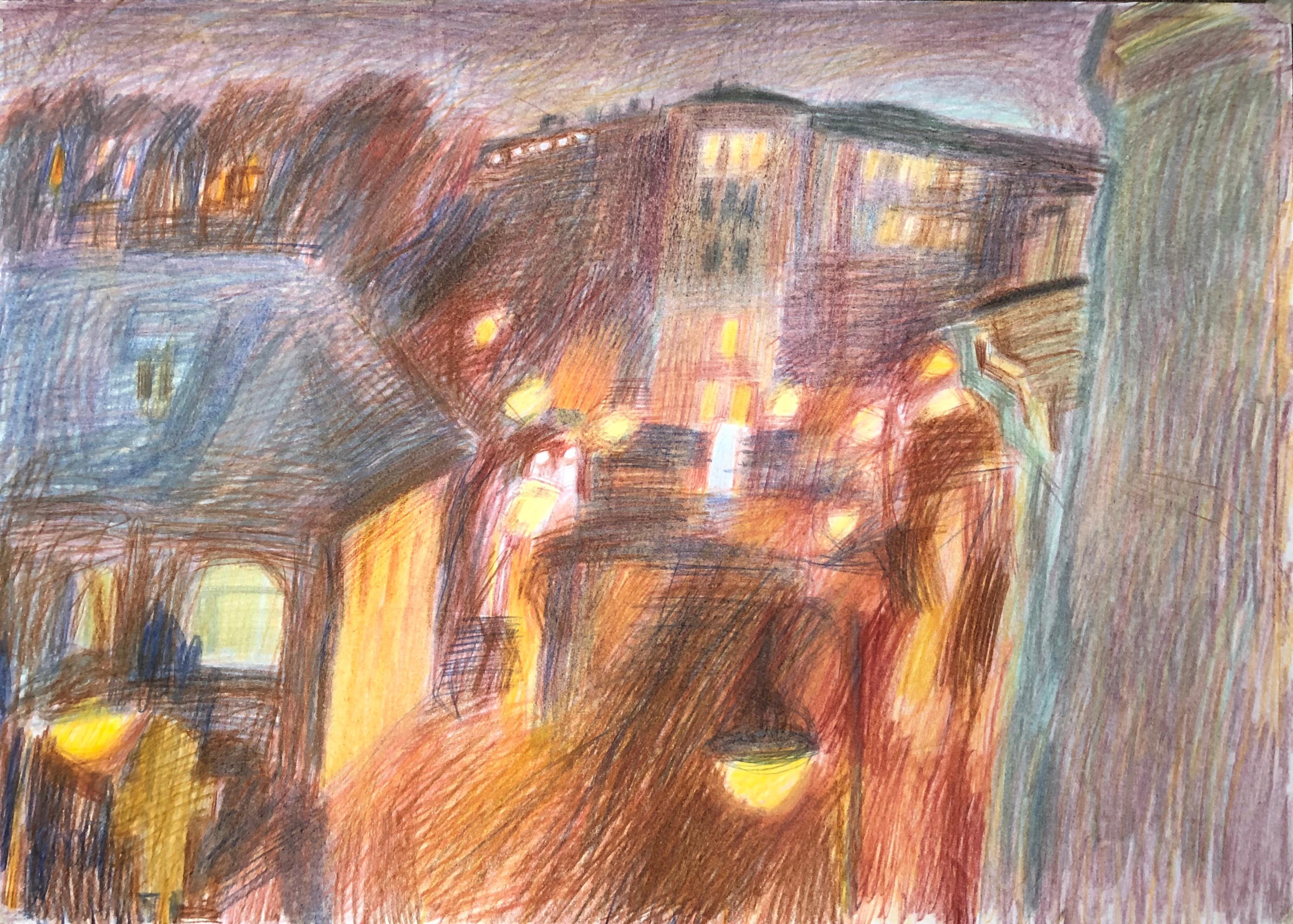 Занятие про смешение и взаимодействие двух разных материалов — гуаши и цветных карандашей. И про решение сопутствующих трудностей: как получить сложный колорит, а не грязь, — и других.