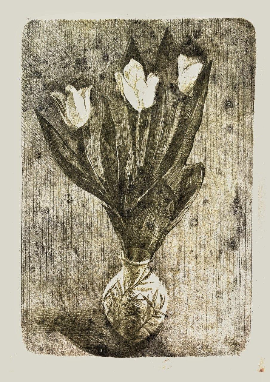 Леся: «С диатипией я познакомилась несколько лет назад, когда увидела на выставке работы, выполненные в этой технике. Они поразили меня своей текстурой. Мне казалось, что это очень сложно, потому что похоже на офортный оттиск. А на практике оказалось, что материалы и инструменты просты и доступны. Технику можно использовать в домашних условиях, на набросках и пленэрах».