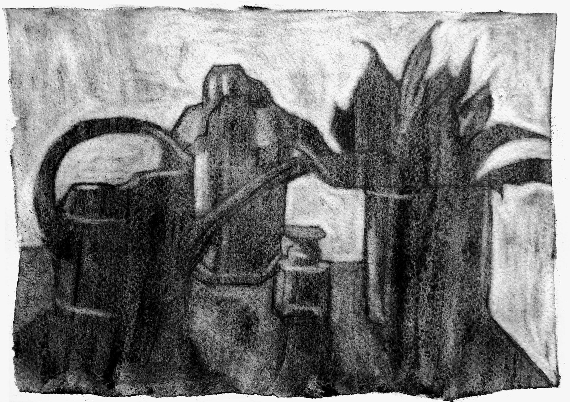 Черно-белая графика разведенной тушью или акварелью, трафарет